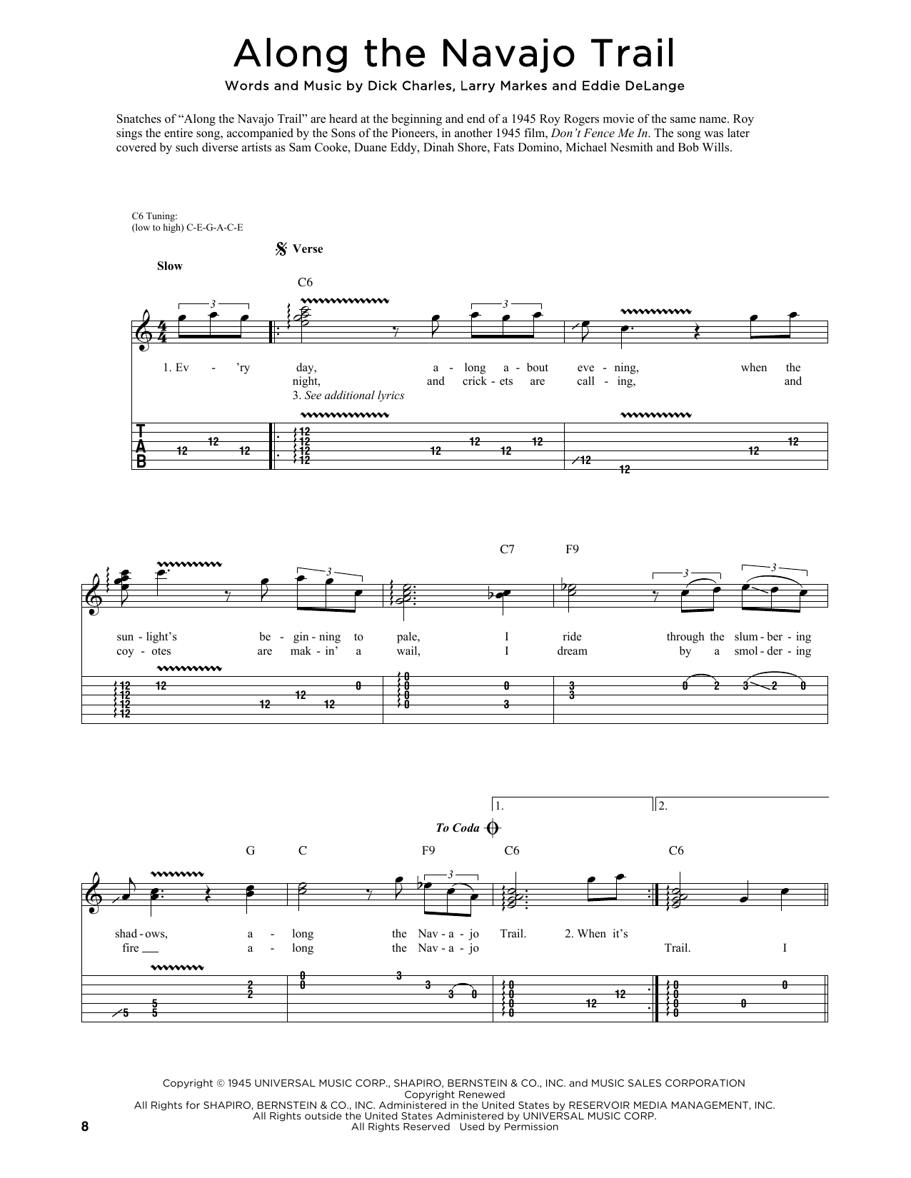 Download or print Roy Rogers Along The Navajo Trail (arr. Fred Sokolow) sheet music, chords and digital score arranged for Guitar Tab. This Country score includes 2 page(s).