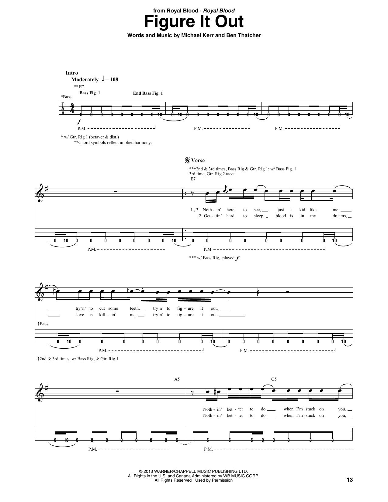 Download or print Royal Blood Figure It Out sheet music, chords and digital score arranged for Bass Guitar Tab. This Pop score includes 4 page(s).