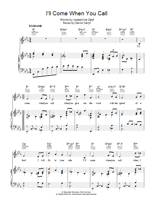 Download or print Ruby Murray I'll Come When You Call sheet music, chords and digital score arranged for Piano, Vocal & Guitar Chords. This Standards score includes 3 page(s).