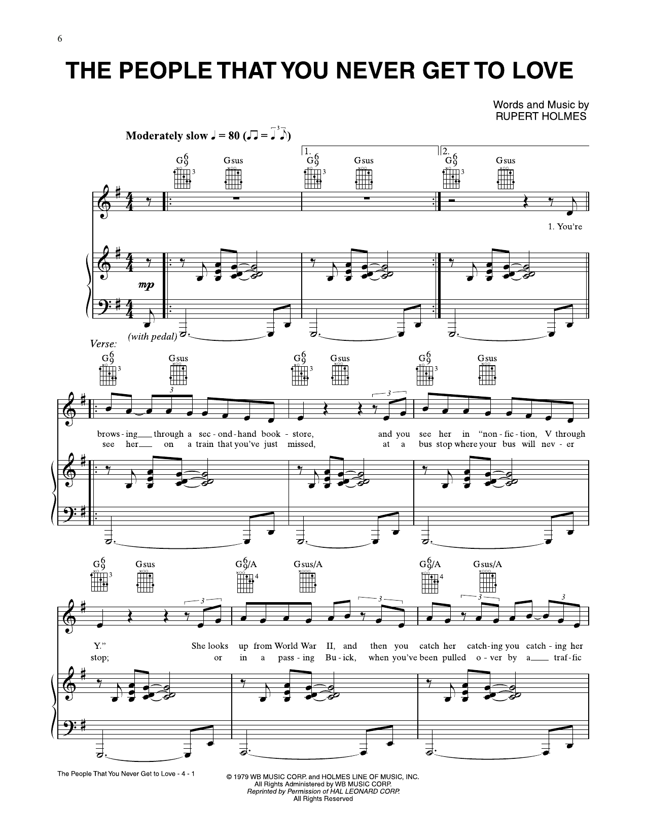 Download or print Rupert Holmes The People That You Never Get To Love sheet music, chords and digital score arranged for Piano, Vocal & Guitar Chords (Right-Hand Melody). This Jazz score includes 4 page(s).