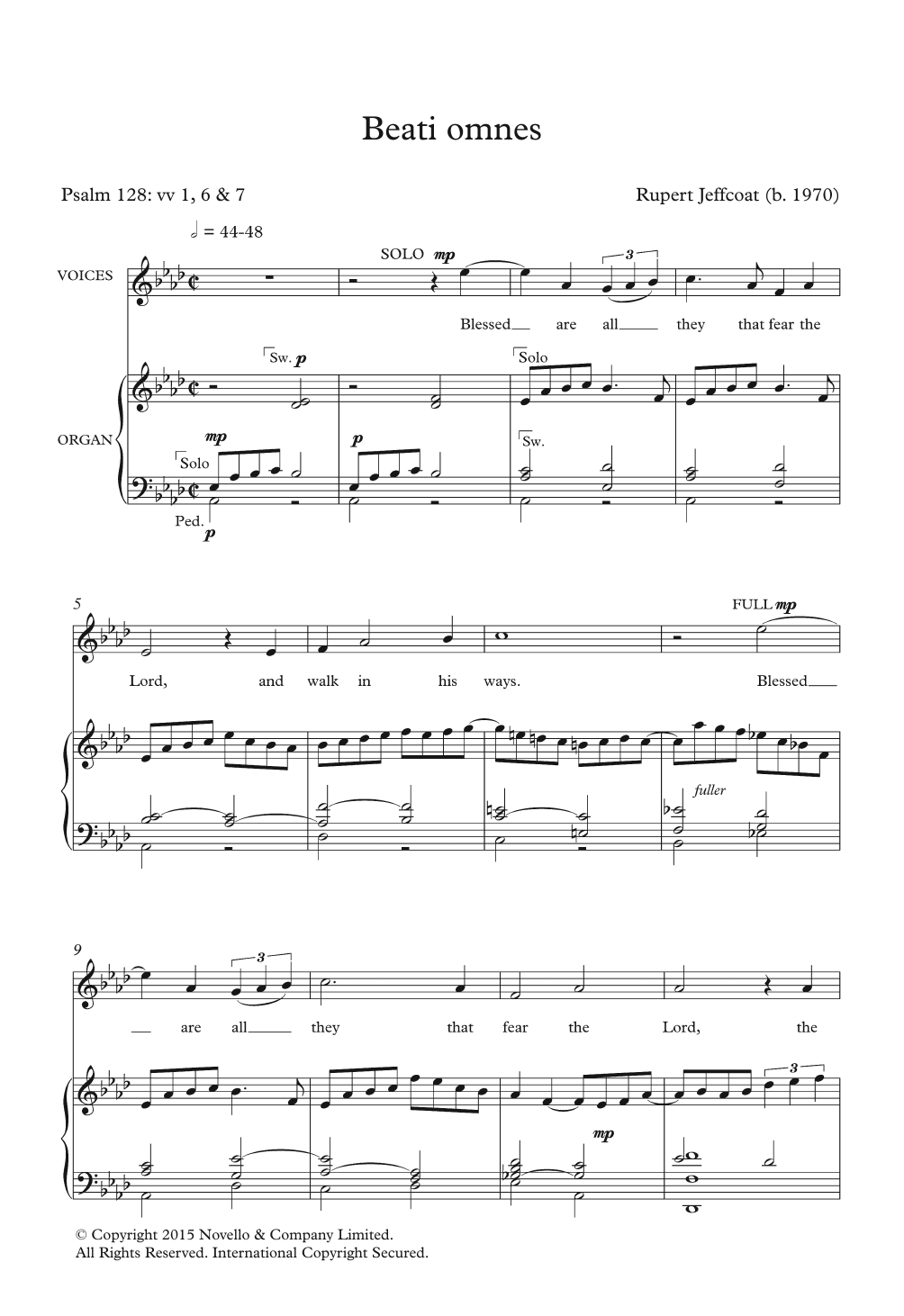 Download or print Rupert Jeffcoat Beati Omnes sheet music, chords and digital score arranged for Piano, Vocal & Guitar Chords. This Classical score includes 2 page(s).