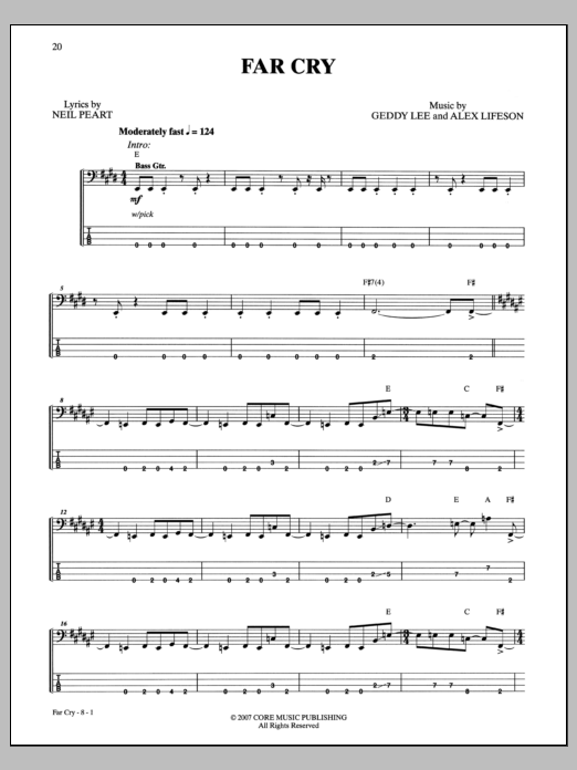 Download or print Rush Far Cry sheet music, chords and digital score arranged for Guitar Tab. This Pop score includes 10 page(s).