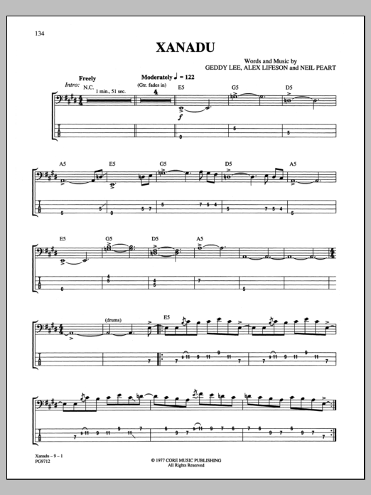 Download or print Rush Xanadu sheet music, chords and digital score arranged for Guitar Tab. This Pop score includes 16 page(s).