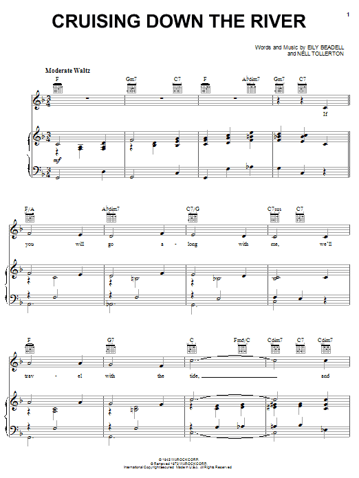 Download or print Russ Morgan Cruising Down The River sheet music, chords and digital score arranged for Piano, Vocal & Guitar Chords (Right-Hand Melody). This Country score includes 6 page(s).