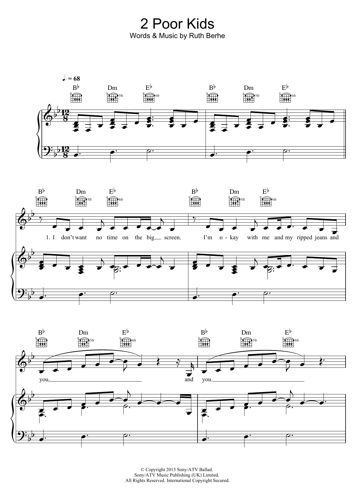 Download or print Ruth B 2 Poor Kids sheet music, chords and digital score arranged for Piano, Vocal & Guitar Chords. This Pop score includes 7 page(s).