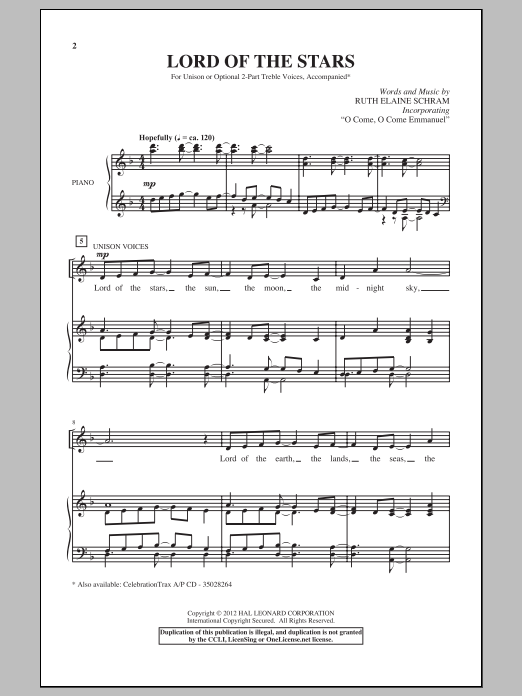 Download or print Ruth Elaine Schram Lord Of The Stars sheet music, chords and digital score arranged for Unison Choir. This Children score includes 7 page(s).