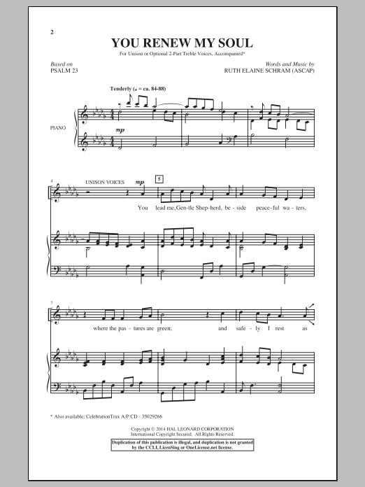 Download or print Ruth Elaine Schram You Renew My Soul sheet music, chords and digital score arranged for 2-Part Choir. This Children score includes 11 page(s).