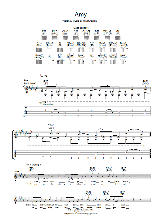 Download or print Ryan Adams Amy sheet music, chords and digital score arranged for Guitar Tab. This Rock score includes 7 page(s).