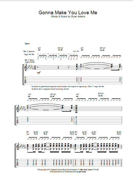Download or print Ryan Adams Gonna Make You Love Me sheet music, chords and digital score arranged for Guitar Tab. This Rock score includes 4 page(s).