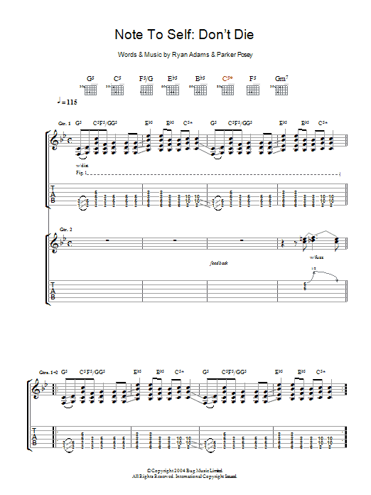 Download or print Ryan Adams Note To Self: Don't Die sheet music, chords and digital score arranged for Guitar Tab. This Rock score includes 5 page(s).