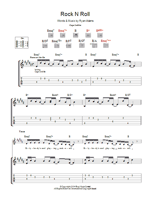 Download or print Ryan Adams Rock 'N Roll sheet music, chords and digital score arranged for Guitar Tab. This Rock score includes 4 page(s).