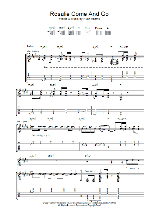 Download or print Ryan Adams Rosalie Come And Go sheet music, chords and digital score arranged for Guitar Tab. This Rock score includes 9 page(s).
