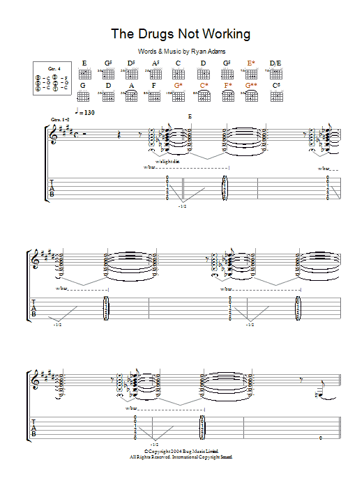 Download or print Ryan Adams The Drugs Not Working sheet music, chords and digital score arranged for Guitar Tab. This Rock score includes 15 page(s).