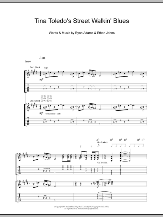Download or print Ryan Adams Tina Toledo's Street Walkin' Blues sheet music, chords and digital score arranged for Guitar Tab. This Rock score includes 16 page(s).
