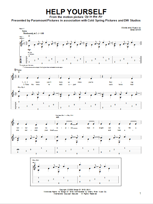 Download or print Sad Brad Smith Help Yourself sheet music, chords and digital score arranged for Guitar Tab. This Film/TV score includes 6 page(s).