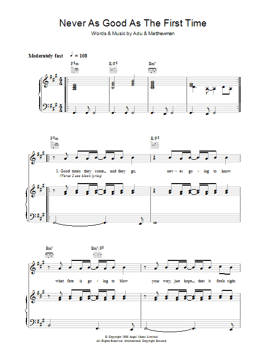 Download or print Sade Never As Good As The First Time sheet music, chords and digital score arranged for Piano, Vocal & Guitar Chords. This Pop score includes 6 page(s).