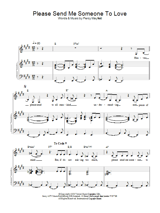 Quick facts Please Send Me Someone To Love about digital sheet music