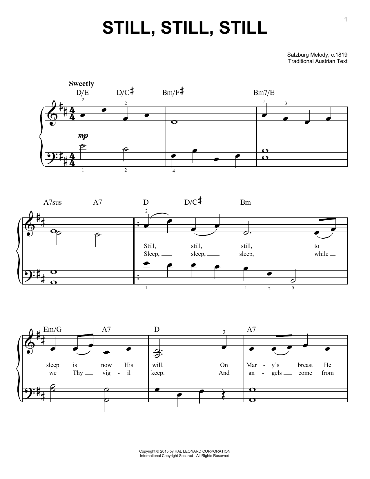 Download or print Salzburg Melody, c.1819 Still, Still, Still sheet music, chords and digital score arranged for Clarinet Duet. This Christmas score includes 2 page(s).