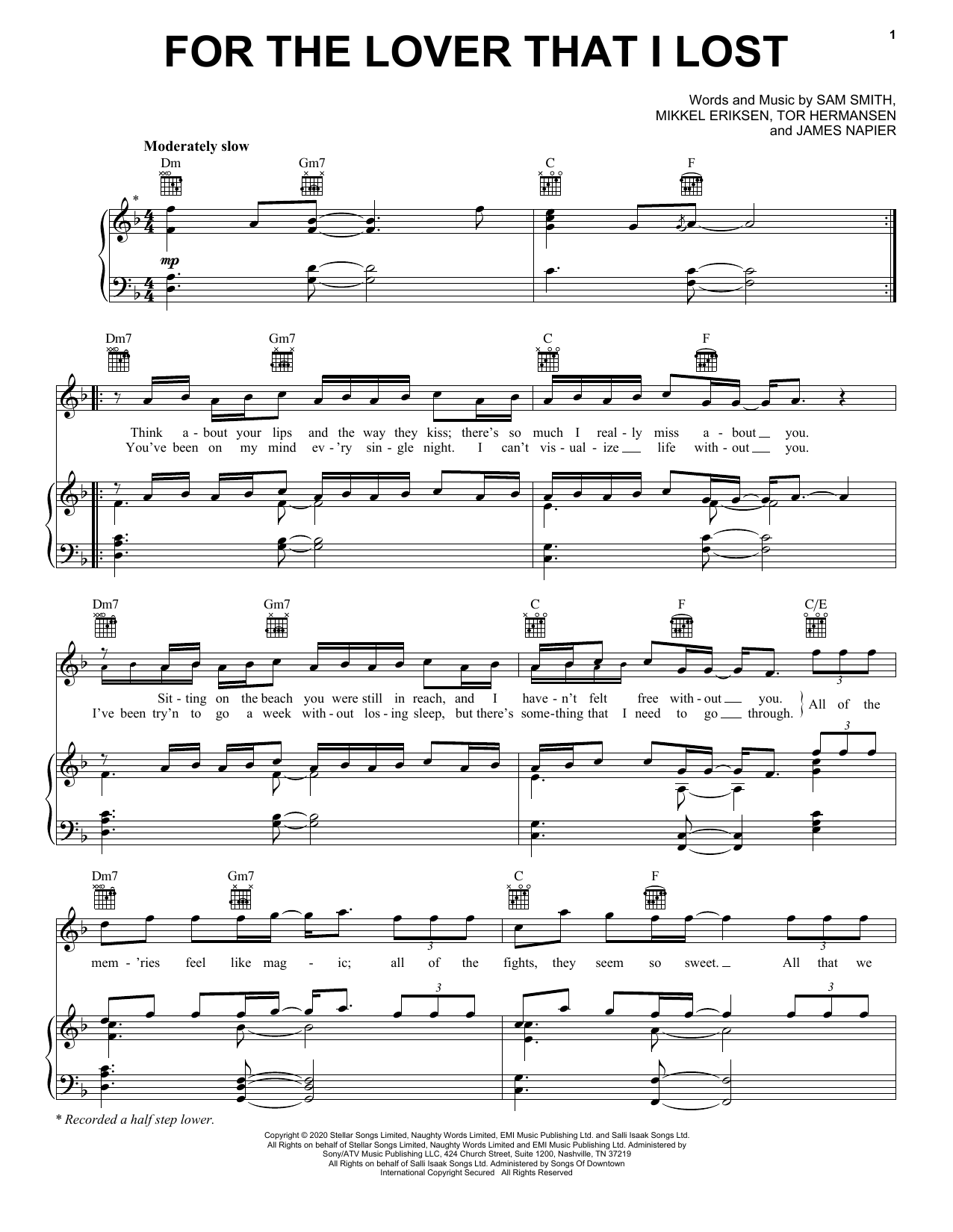 Download or print Sam Smith For The Lover That I Lost sheet music, chords and digital score arranged for Piano, Vocal & Guitar Chords (Right-Hand Melody). This Pop score includes 4 page(s).