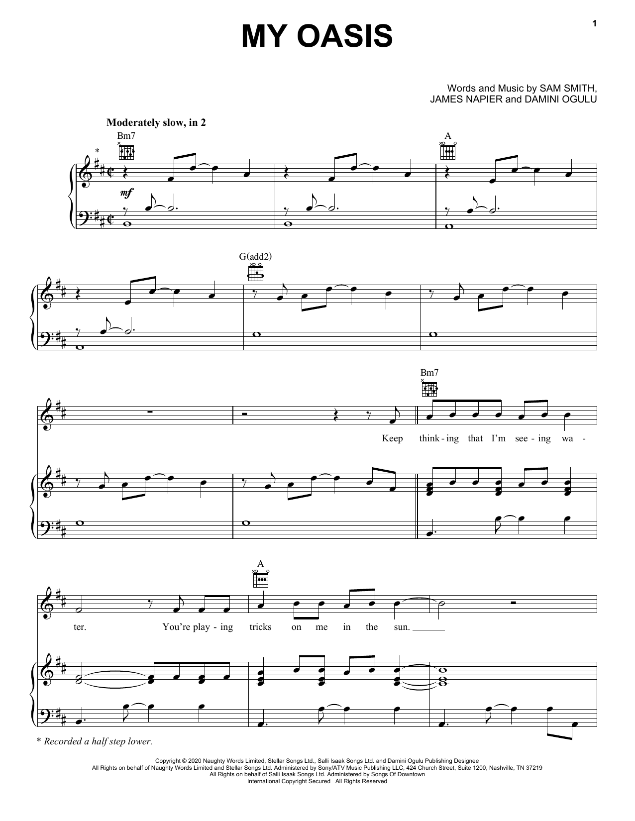 Download or print Sam Smith My Oasis (feat. Burna Boy) sheet music, chords and digital score arranged for Easy Piano. This Pop score includes 6 page(s).