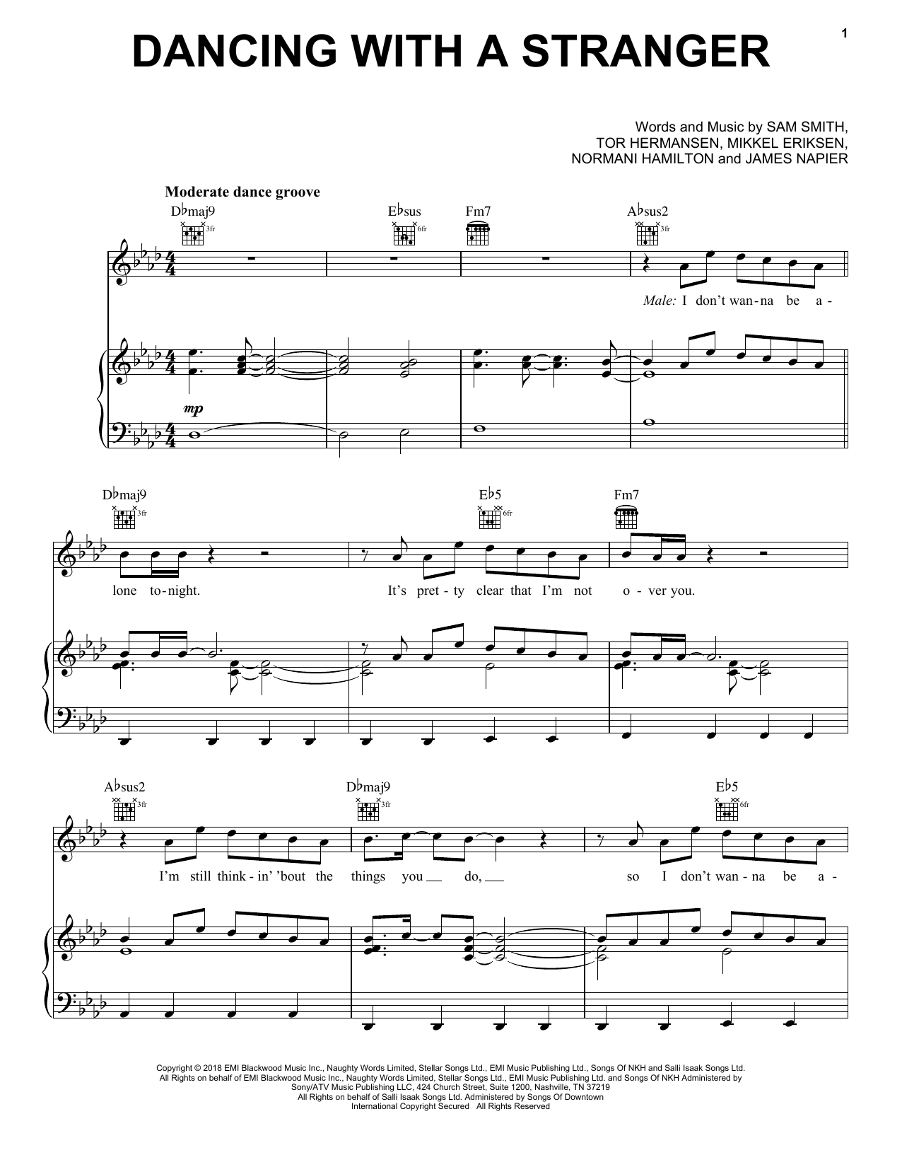 Download or print Sam Smith & Normani Dancing With A Stranger sheet music, chords and digital score arranged for Super Easy Piano. This Pop score includes 2 page(s).