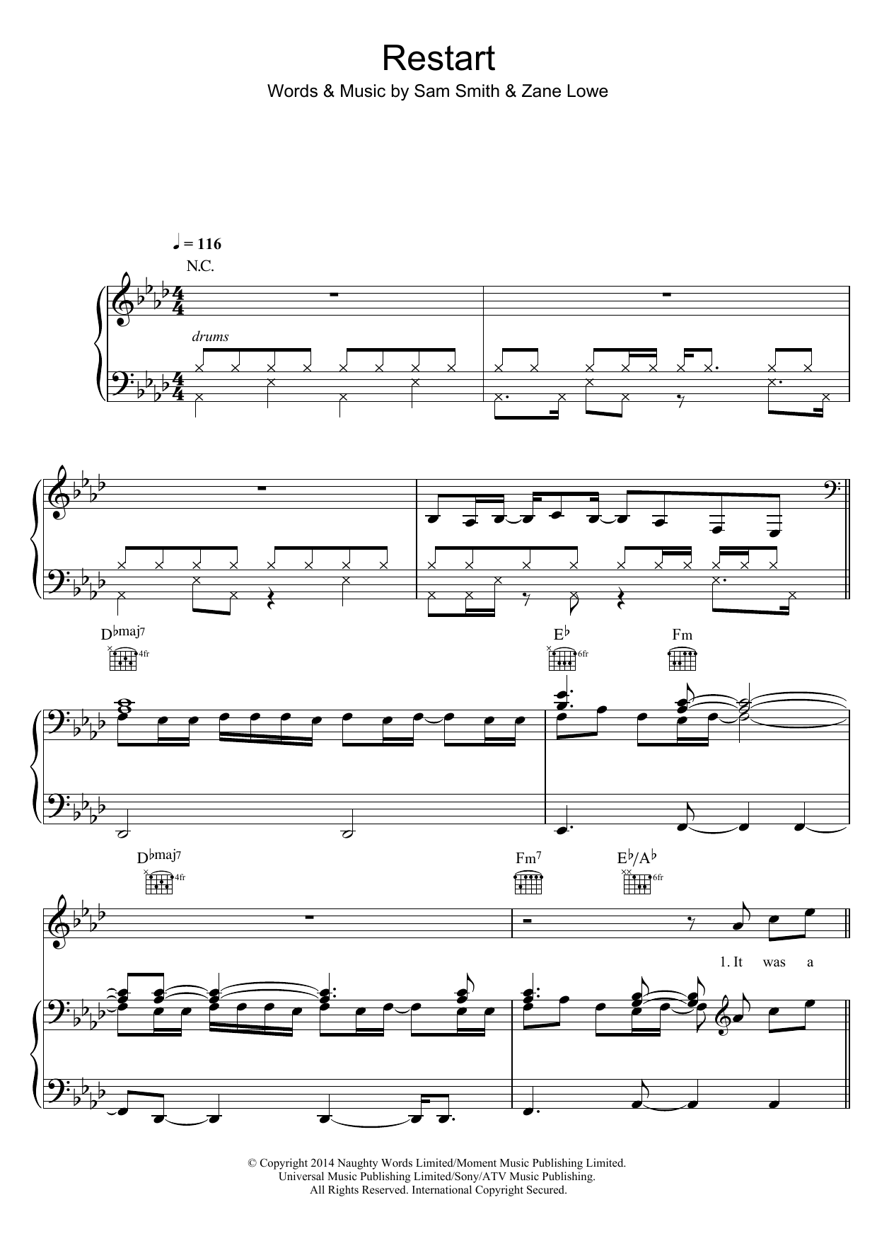 Download or print Sam Smith Restart sheet music, chords and digital score arranged for Easy Piano. This Pop score includes 4 page(s).