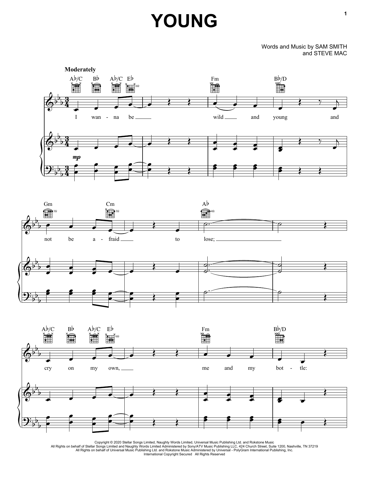 Download or print Sam Smith Young sheet music, chords and digital score arranged for Piano, Vocal & Guitar Chords (Right-Hand Melody). This Pop score includes 6 page(s).
