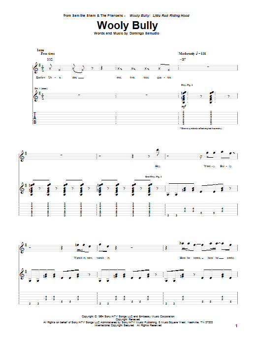 Download or print Sam The Sham & The Pharaohs Wooly Bully sheet music, chords and digital score arranged for Violin Solo. This Pop score includes 1 page(s).