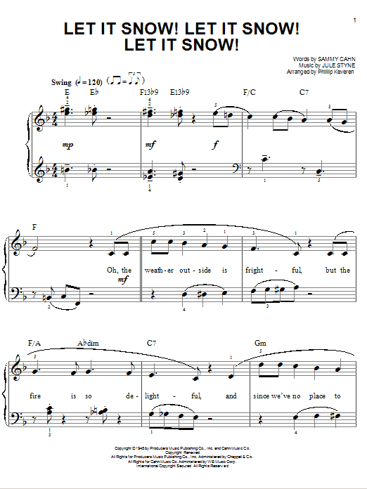 Download or print Sammy Cahn Let It Snow! Let It Snow! Let It Snow! [Jazz version] (arr. Phillip Keveren) sheet music, chords and digital score arranged for Easy Piano. This Children score includes 4 page(s).