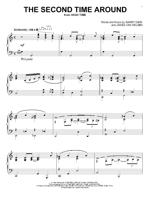 Download or print Sammy Cahn The Second Time Around sheet music, chords and digital score arranged for Piano Solo. This Pop score includes 4 page(s).