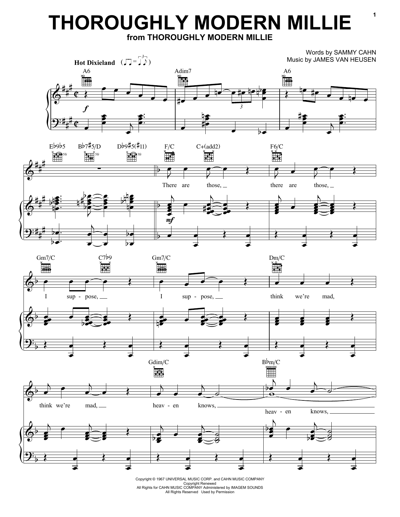 Download or print Sammy Cahn Thoroughly Modern Millie sheet music, chords and digital score arranged for Piano & Vocal. This Film/TV score includes 6 page(s).