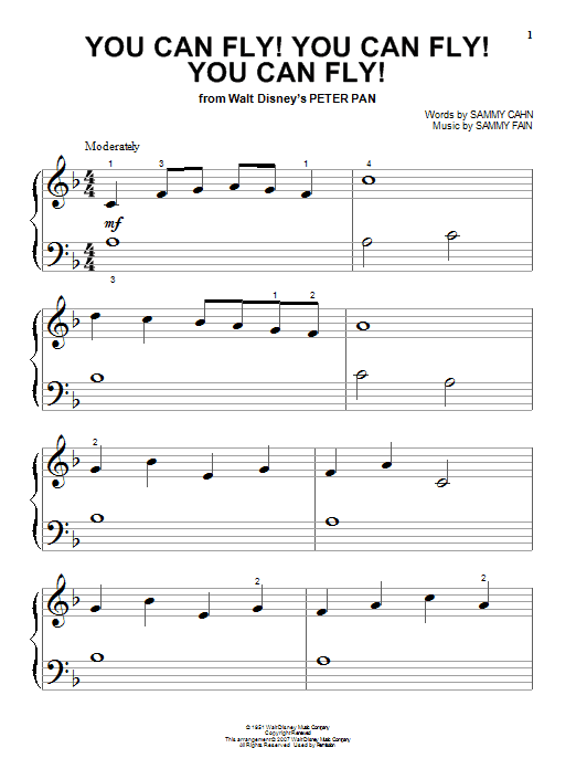 Download or print Sammy Cahn You Can Fly! You Can Fly! You Can Fly! (from Peter Pan) sheet music, chords and digital score arranged for Guitar Chords/Lyrics. This Children score includes 2 page(s).