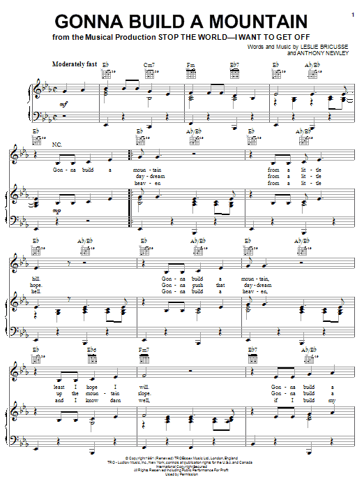 Download or print Sammy Davis Jr. Gonna Build A Mountain sheet music, chords and digital score arranged for Piano, Vocal & Guitar Chords. This Film/TV score includes 4 page(s).