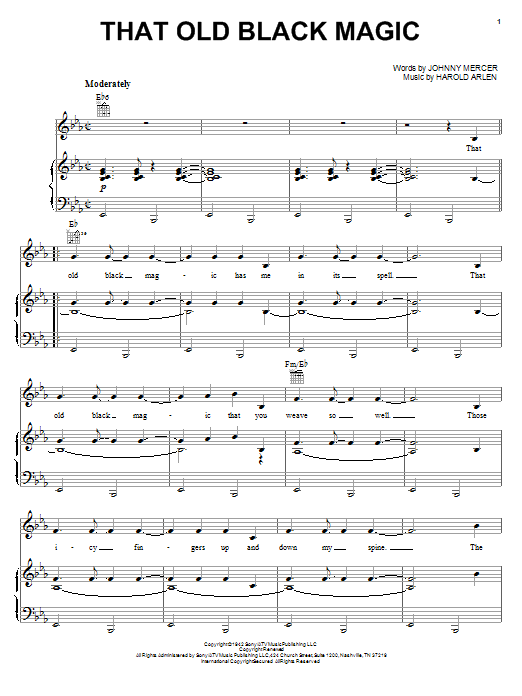 Download or print Sammy Davis Jr. That Old Black Magic sheet music, chords and digital score arranged for Piano, Vocal & Guitar Chords (Right-Hand Melody). This Film/TV score includes 5 page(s).