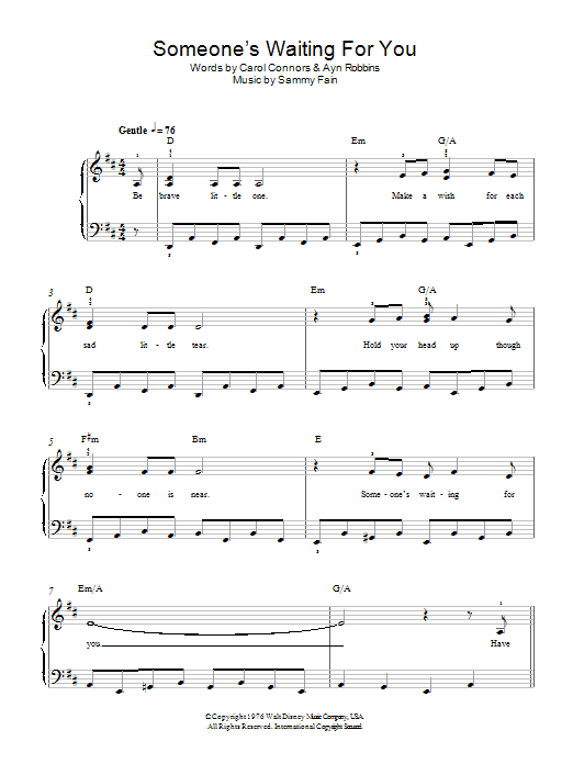 Download or print Sammy Fain Someone's Waiting For You sheet music, chords and digital score arranged for Violin Solo. This Children score includes 1 page(s).
