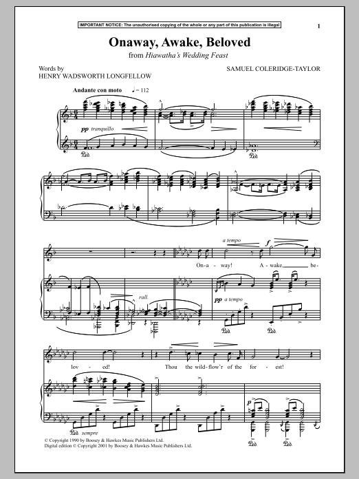 Quick facts Onaway, Awake, Beloved (from Hiawatha's Wedding Feast) about digital sheet music