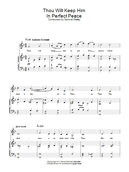 Download or print Samuel Wesley Thou Wilt Keep Him In Perfect Peace sheet music, chords and digital score arranged for Piano & Vocal. This Classical score includes 4 page(s).