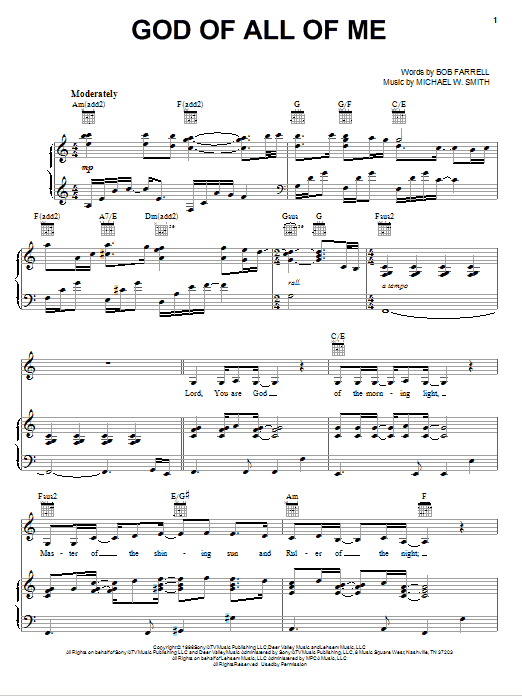 Download or print Sandi Patty God Of All Of Me sheet music, chords and digital score arranged for Piano, Vocal & Guitar Chords (Right-Hand Melody). This Christian score includes 7 page(s).