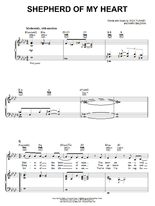 Download or print Sandi Patty Shepherd Of My Heart sheet music, chords and digital score arranged for Piano, Vocal & Guitar Chords (Right-Hand Melody). This Christian score includes 6 page(s).