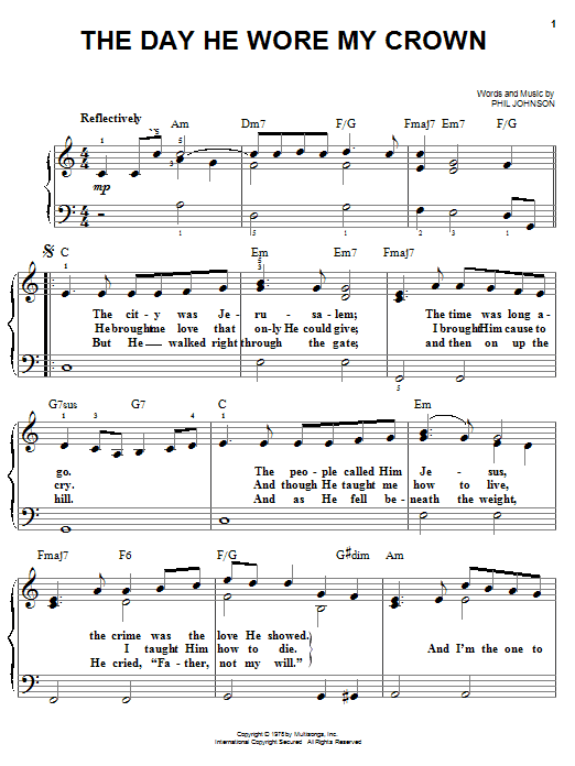 Download or print Sandi Patty The Day He Wore My Crown sheet music, chords and digital score arranged for Big Note Piano. This Christian score includes 3 page(s).