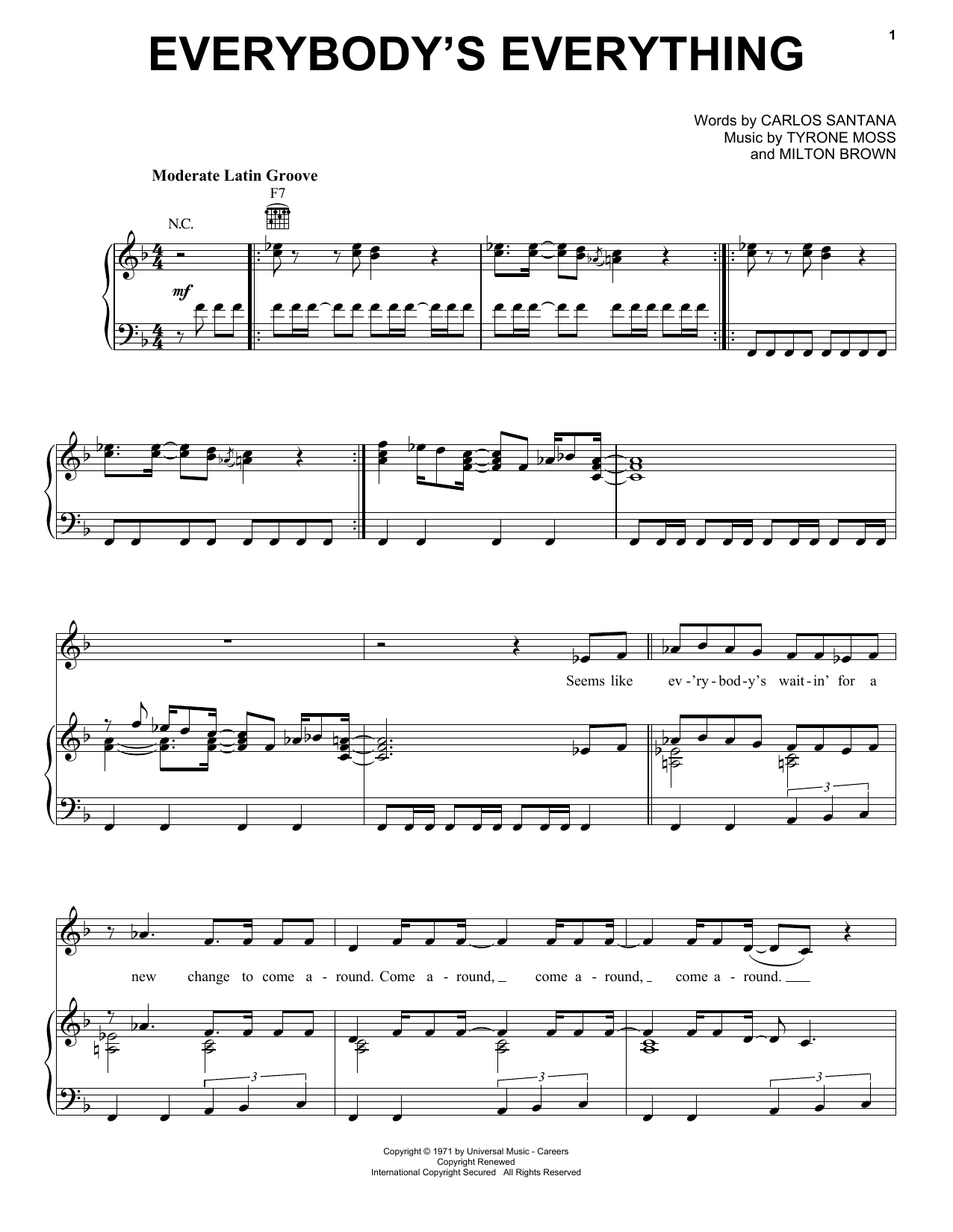 Download or print Santana Everybody's Everything sheet music, chords and digital score arranged for Easy Guitar Tab. This Latin score includes 3 page(s).