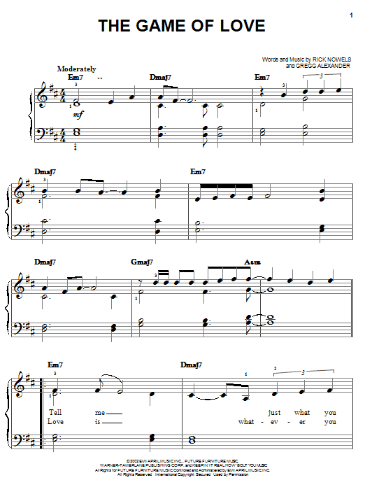 Download or print Santana featuring Michelle Branch The Game Of Love sheet music, chords and digital score arranged for Easy Piano. This Pop score includes 6 page(s).