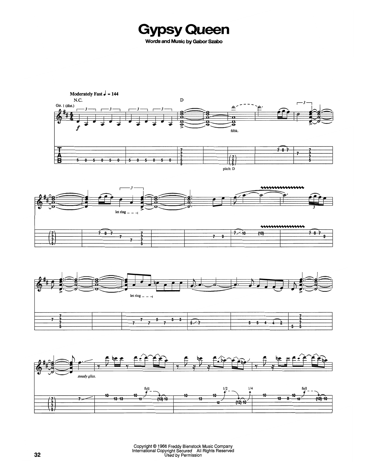Download or print Santana Gypsy Queen sheet music, chords and digital score arranged for Guitar Tab. This Rock score includes 2 page(s).