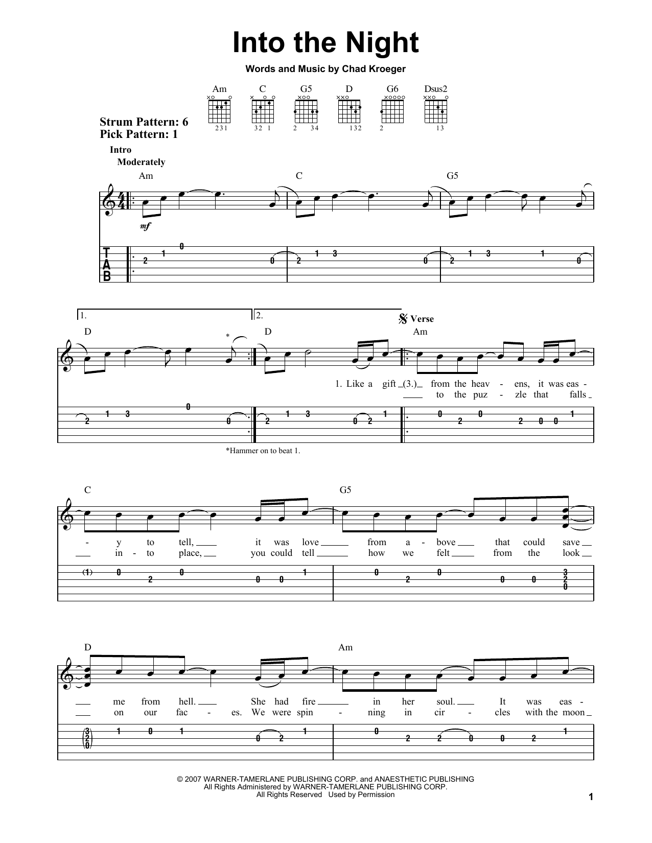 Quick facts Into The Night about digital sheet music