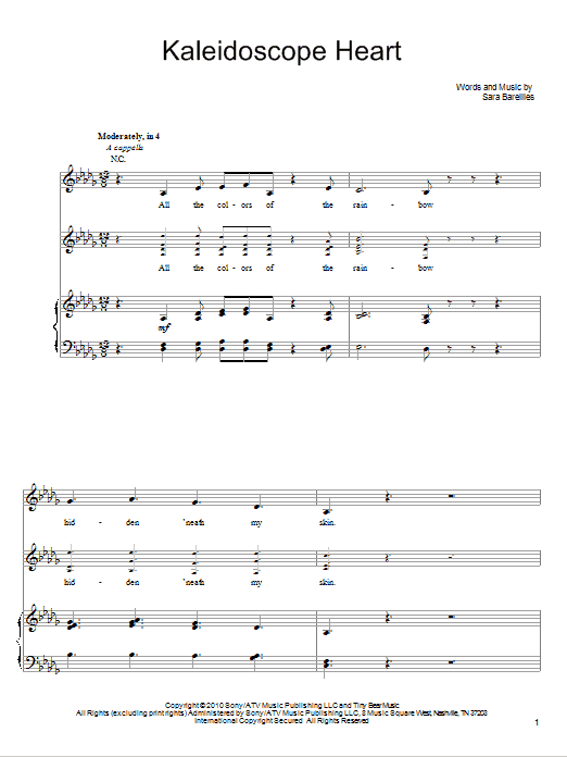 Download or print Sara Bareilles Kaleidoscope Heart sheet music, chords and digital score arranged for Piano, Vocal & Guitar Chords (Right-Hand Melody). This Pop score includes 3 page(s).