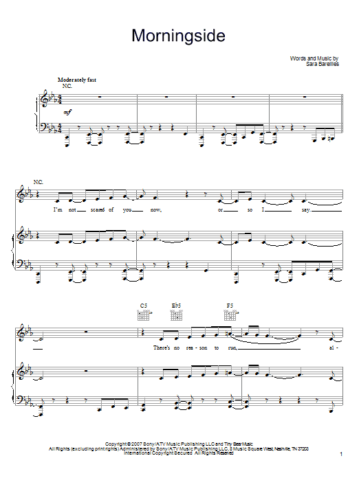 Download or print Sara Bareilles Morningside sheet music, chords and digital score arranged for Easy Piano. This Pop score includes 7 page(s).