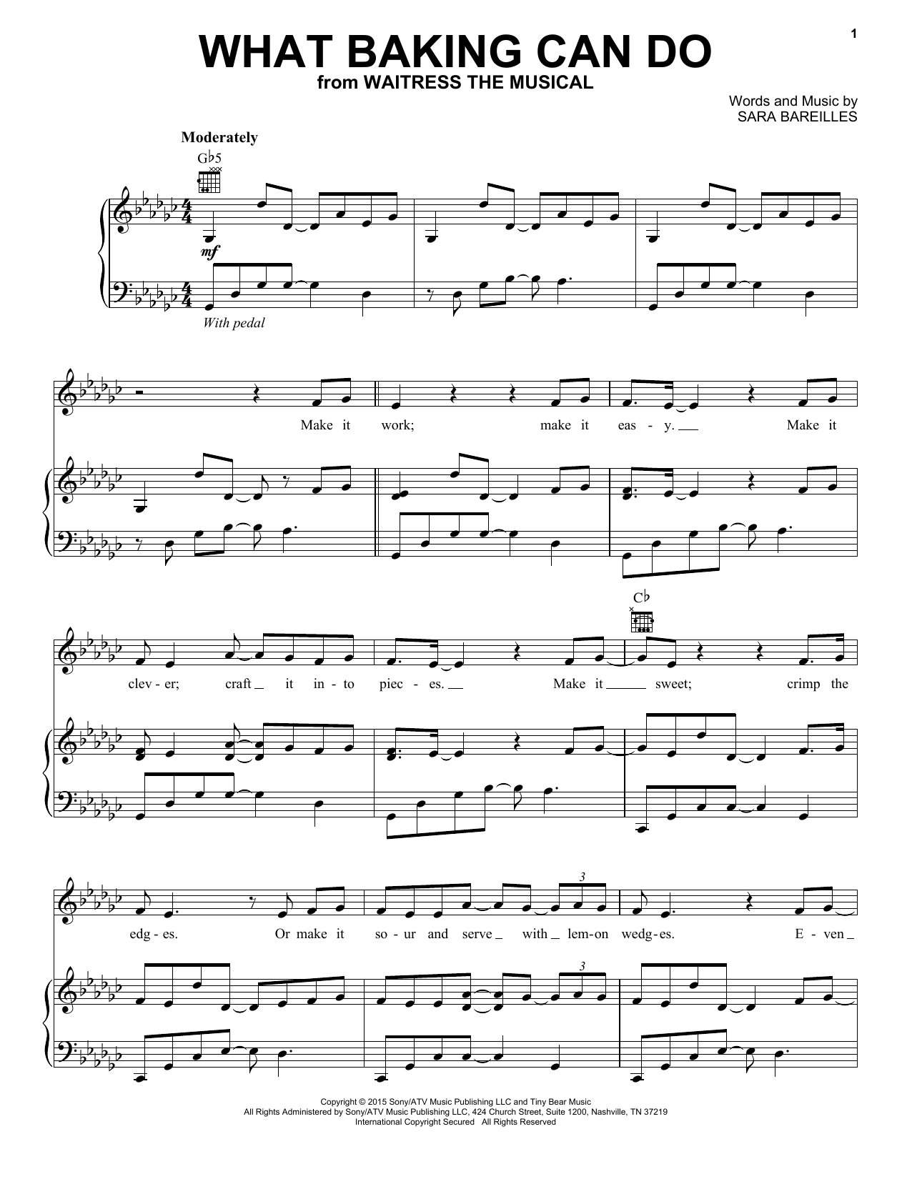Download or print Sara Bareilles What Baking Can Do (from Waitress The Musical) sheet music, chords and digital score arranged for Piano, Vocal & Guitar Chords (Right-Hand Melody). This Pop score includes 8 page(s).