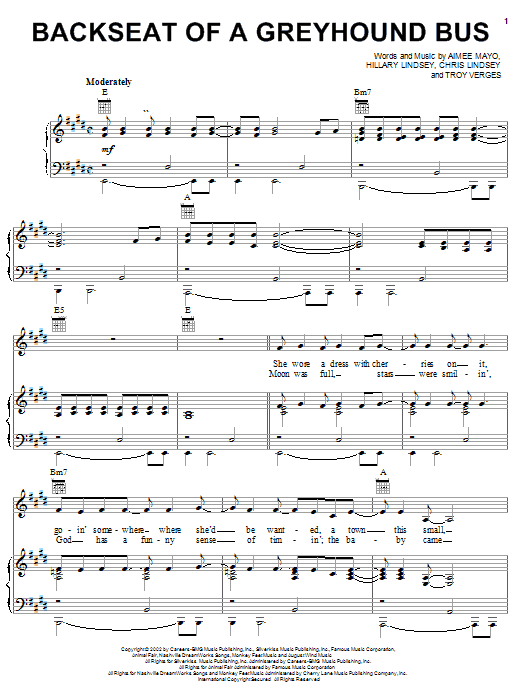 Download or print Sara Evans Backseat Of A Greyhound Bus sheet music, chords and digital score arranged for Piano, Vocal & Guitar Chords (Right-Hand Melody). This Country score includes 7 page(s).