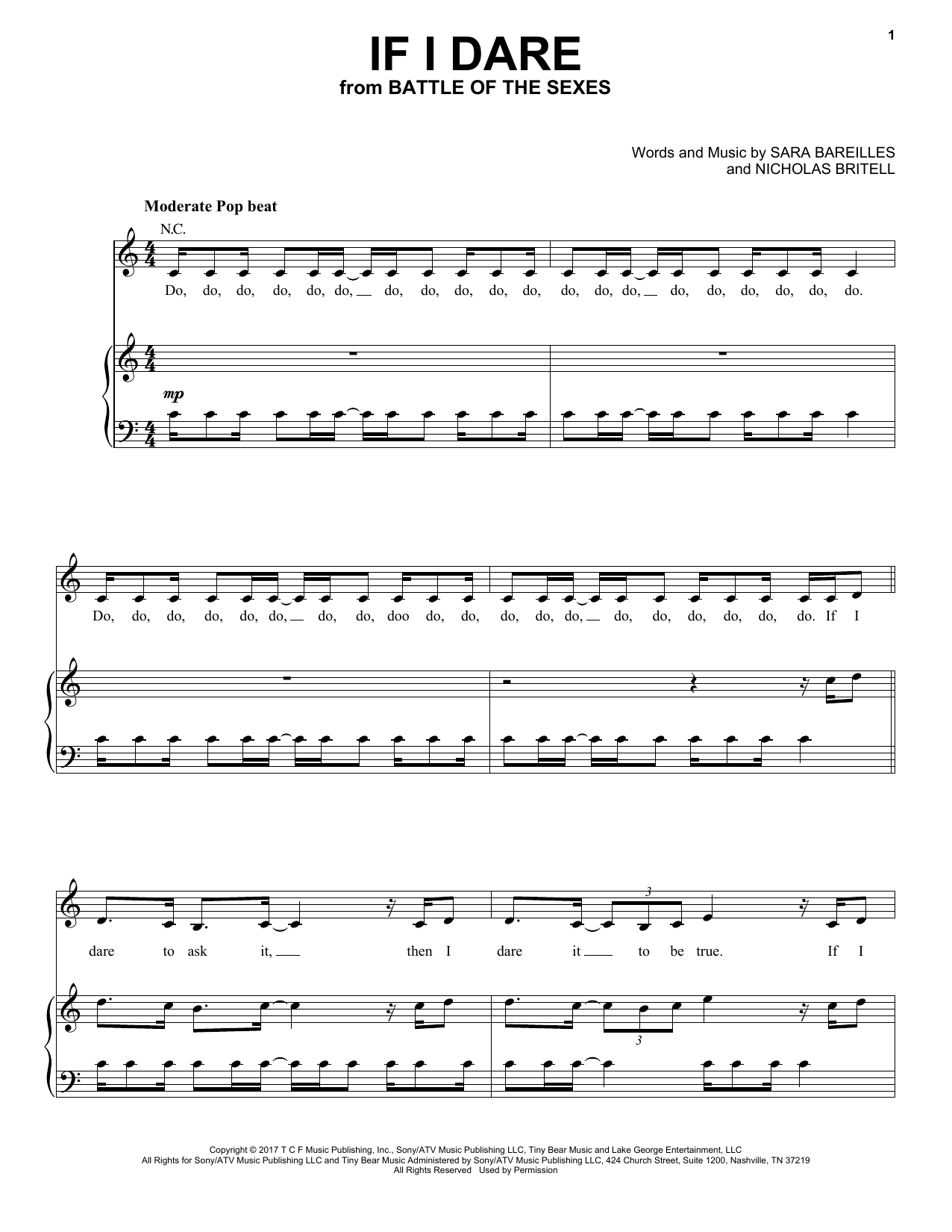 Download or print Sara Bareilles If I Dare sheet music, chords and digital score arranged for Piano, Vocal & Guitar Chords (Right-Hand Melody). This Pop score includes 9 page(s).