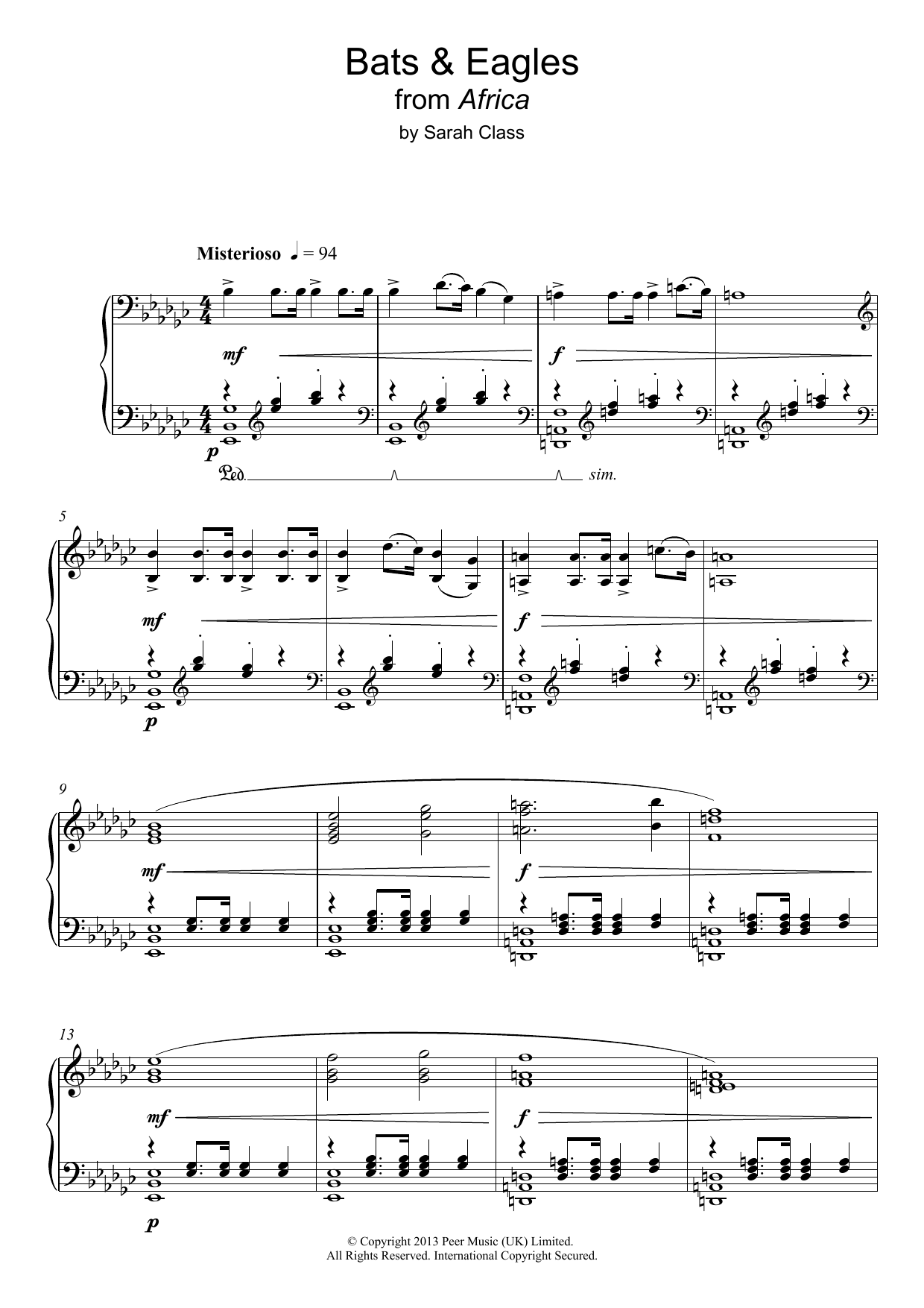 Download or print Sarah Class Bats & Eagles sheet music, chords and digital score arranged for Piano Solo. This Film/TV score includes 3 page(s).